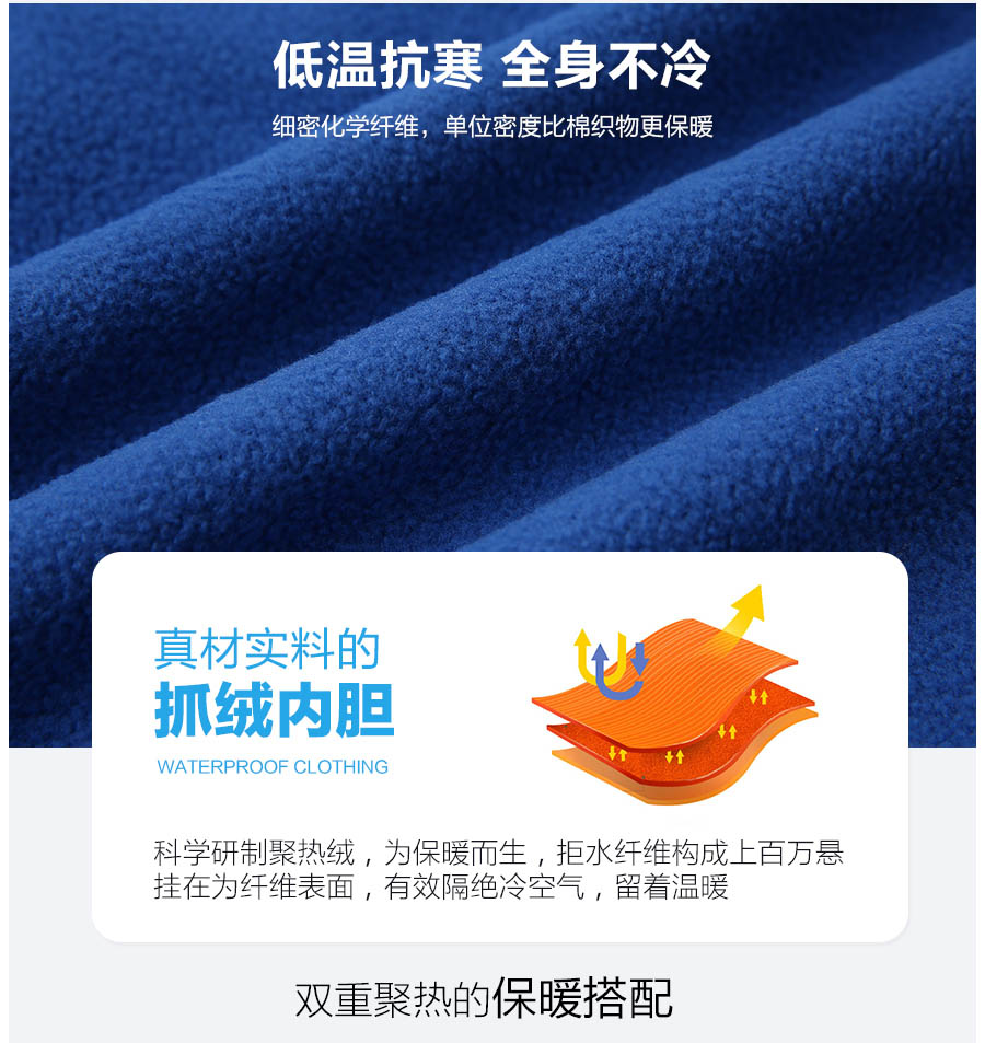 产品面料:里面:摇粒绒;外面:100%聚酯纤维
