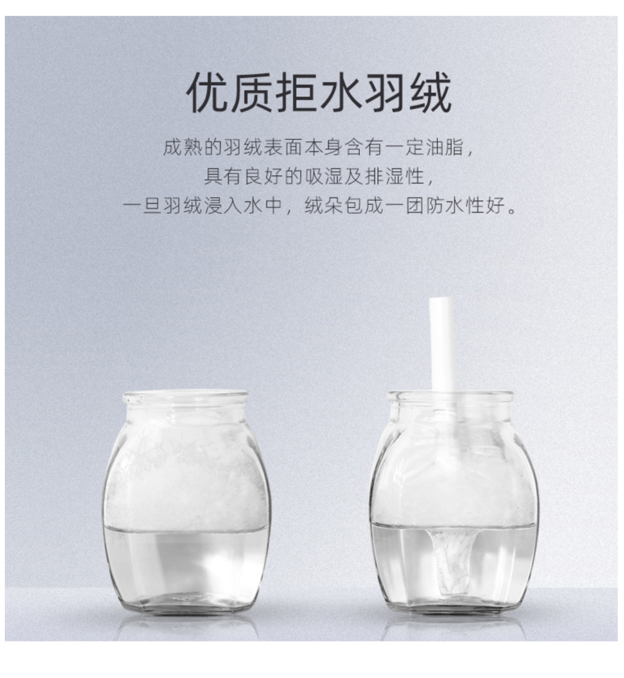 产品属性:白鸭绒款面料柔软丝滑、舒适、保暖、亲近皮肤