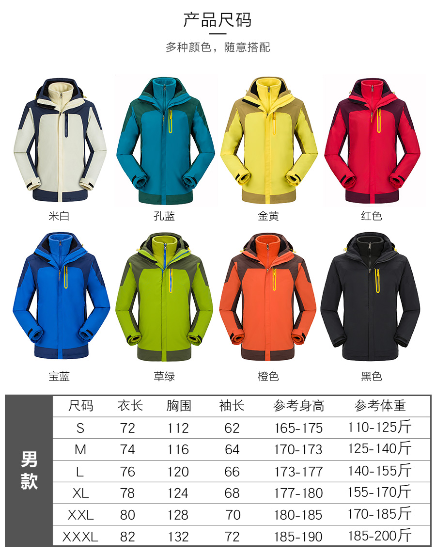 产品尺码:155(S)165(M)170(L)175(XL)180(XXL)185(XXL)