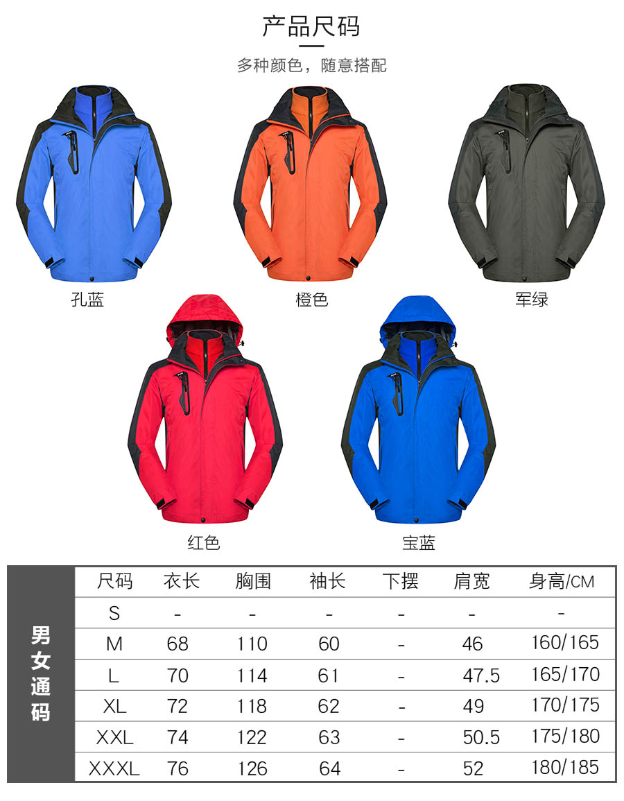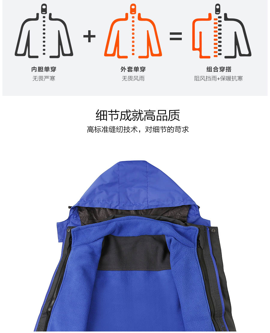 户外团体三合一冲锋衣定制