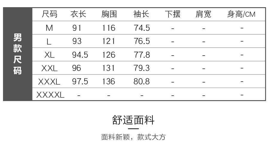 产品尺码:170(M)175(L)180(XL)185(XXL)190(XXXL)