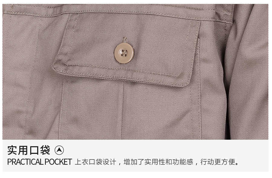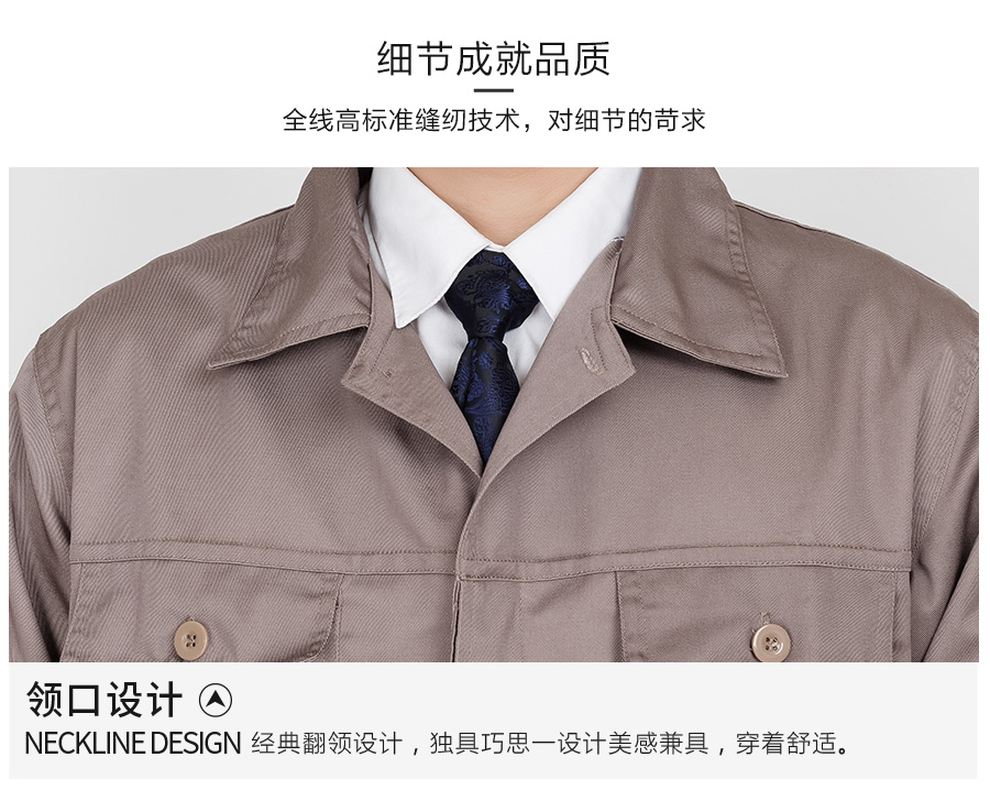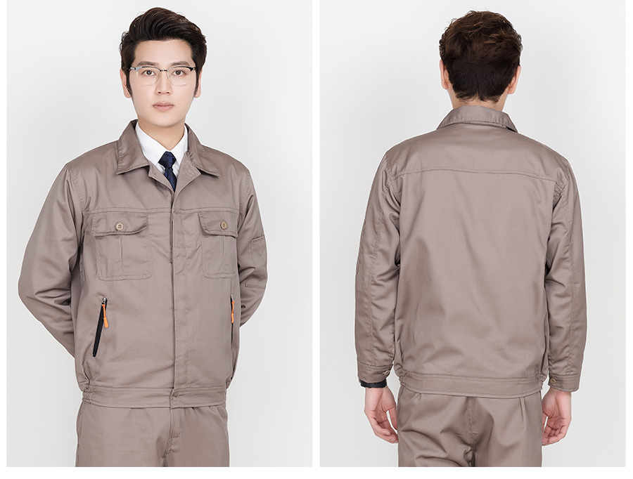 驼色长袖纯棉工作服定做