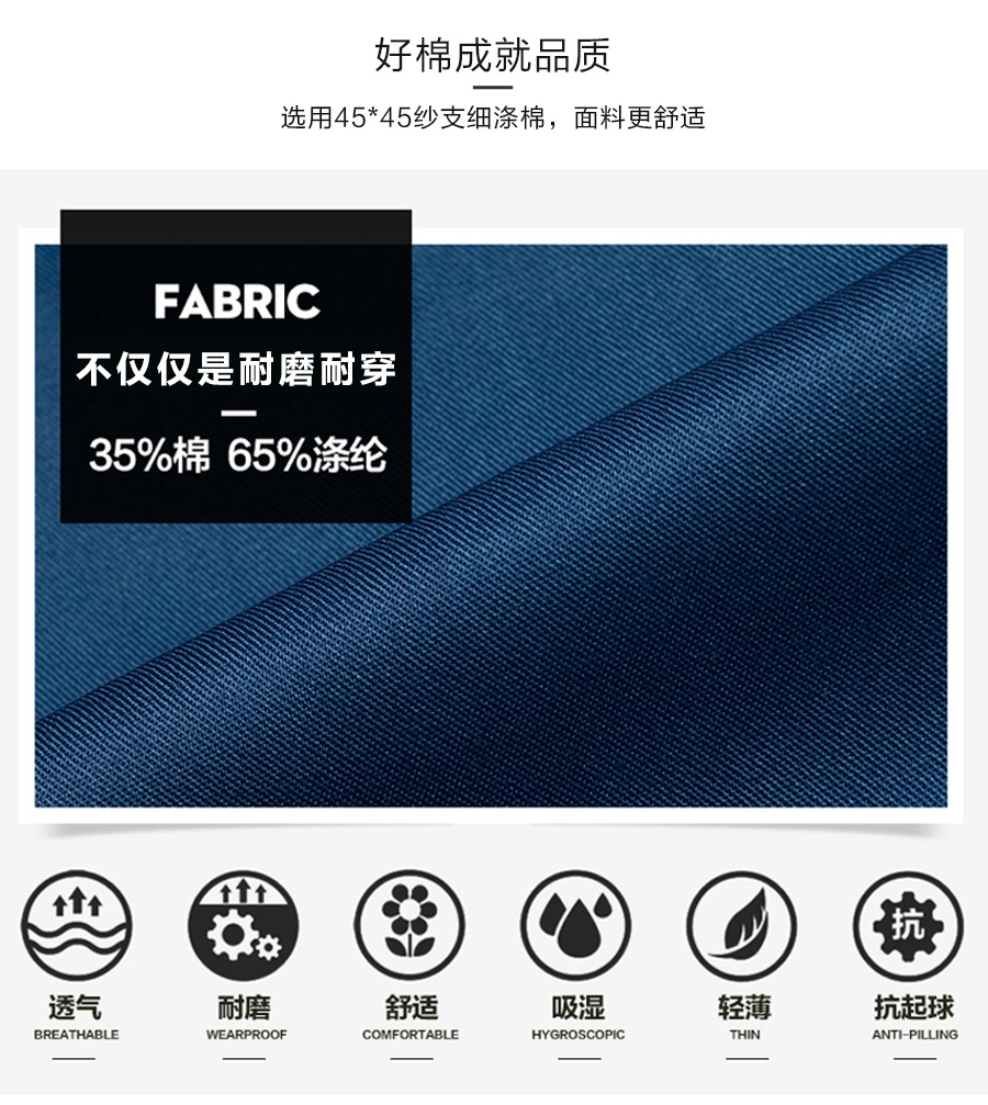 纯棉薄款吸汗透气长袖工作服