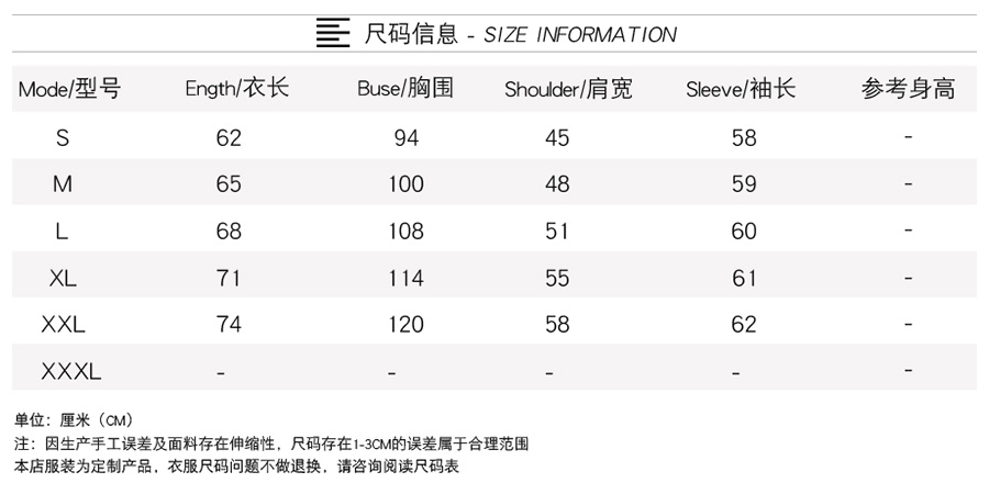 产品尺码:155(S)165(M)170(L)175(XL)180(XXL)185(XXL)
