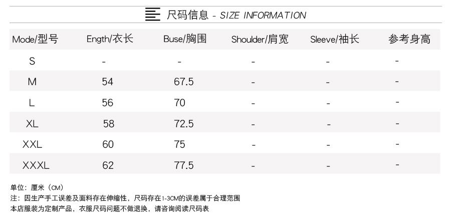 产品尺码:155(S)165(M)170(L)175(XL)180(XXL)185(XXL)